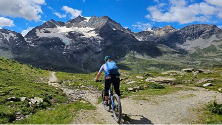 „Die ersten Flowtrails der Alpen wurden vor über zehn Jahren in Livigno gebaut. Seitdem wurde das Trailnetz konsequent erweitert. Passo Trela, Alpisella, Val Mine und ganz neu der Val Minor Trail gehören zum feinsten MTB-Terrain. Mit Hilfe der Seilbahn und besten Fahrtechnik-Coaches lässt sich das Gebiet perfekt erkunden. 3 1/2 unvergessliche Trailtage warten.“